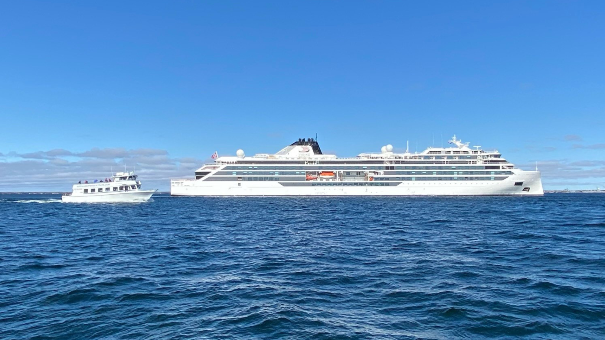 The 665-foot cruise ships carry 378 guests and 256 crew members. The sister-ships Polaris and Octantis each anchor in Thunder Bay and use tender boats to bring guests to shore. They come ashore at The Great Lakes Maritime Heritage Center.