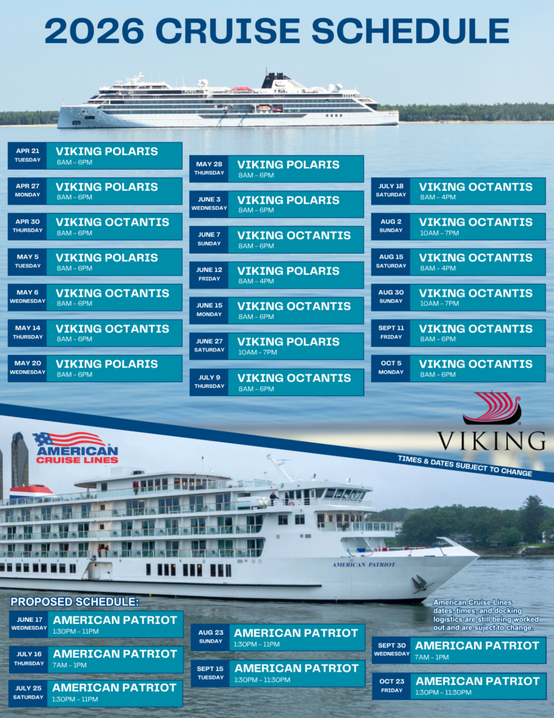 New in 2026, American Cruise Lines will be visiting the port of Alpena with their ship American Patriot which carries 130 guests and 50 crew members. There are seven visits planned: